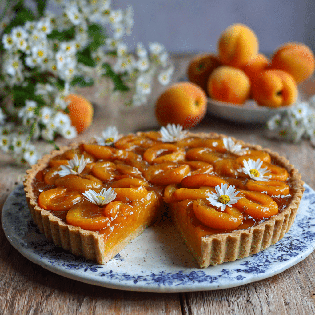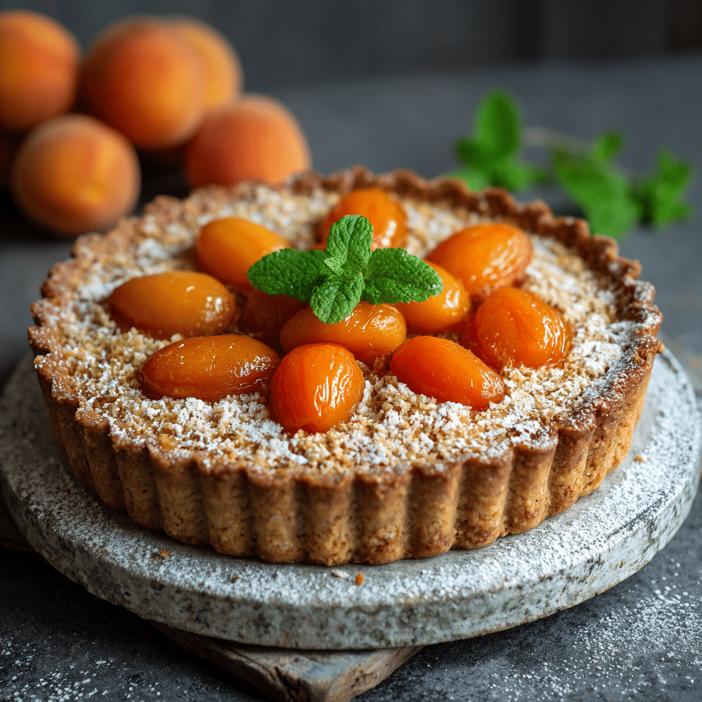 Use ripe but firm apricots for the best texture. If apricots are unavailable, substitute with peaches or plums. The tart can be made a day in advance and stored in the refrigerator. For added crunch, sprinkle toasted almond flakes on top before serving. Serve with vegan vanilla ice cream or coconut yogurt for an extra indulgent treat.
