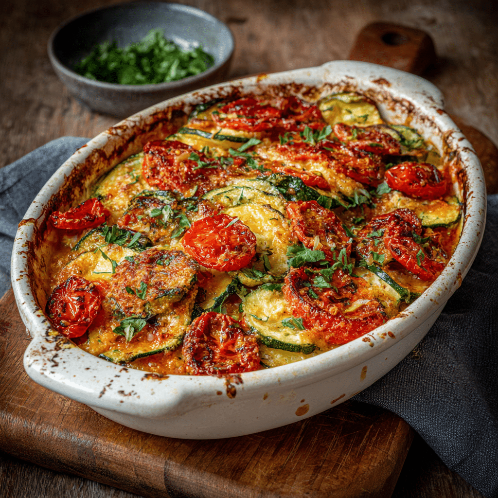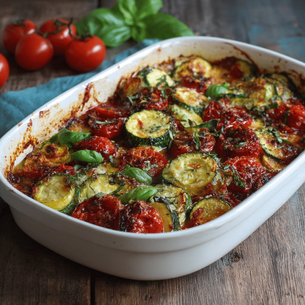 Zucchini and Tomato Bake is a simple Mediterranean dish made with fresh zucchini, ripe tomatoes, olive oil, garlic, and herbs baked until tender and golden. This healthy and comforting recipe works as a side dish or light vegetarian main. Easy to prepare and full of flavor, it celebrates fresh ingredients and traditional home cooking. Serve warm with bread or alongside grilled meat for a complete meal.