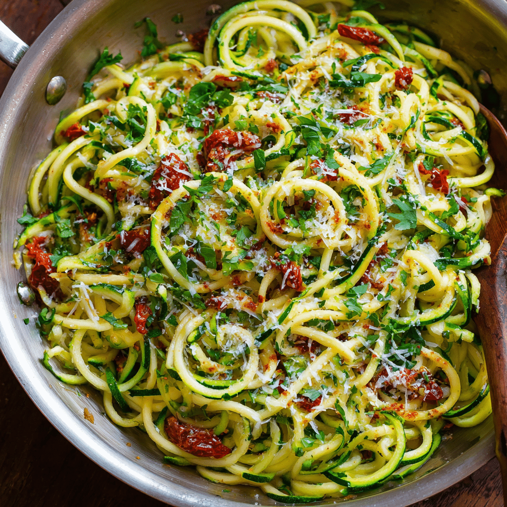 - Add zucchini noodles and cook 2–3 minutes.