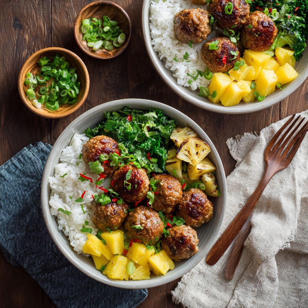 This dish is incredibly versatile. I love serving 30-Minute Hawaiian Meatball Dinner over steamed white rice, but brown rice or jasmine rice works beautifully too. For a lighter option, try it with cauliflower rice or even inside toasted sandwich rolls for Hawaiian meatball subs.
