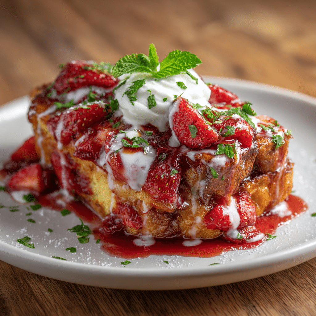 Baked Strawberries and Cream French Toast reminds me that breakfast can be more than rushing and coffee in one hand. It can be a moment. It can be a pause. When the strawberries bake and release their sweet juices, and the cream melts into the custard-soaked bread, the whole kitchen smells like love. I learned to trust recipes like this from my grandmother. She always said that the best food is the food that waits for you patiently in the oven while you talk and laugh.