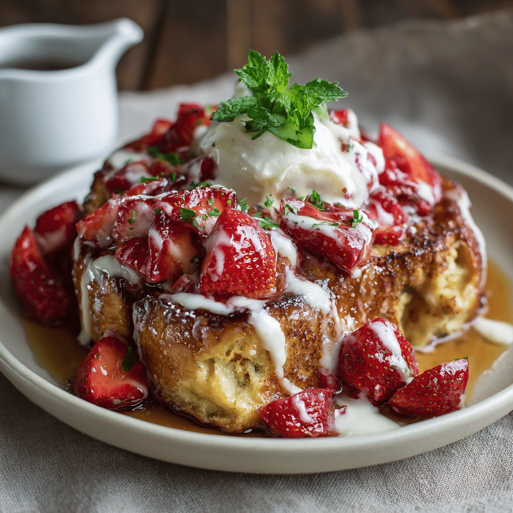 This baked strawberries and cream French toast is soft, creamy, and filled with sweet baked strawberries. Perfect for slow mornings and make-ahead breakfasts, it delivers comfort and warmth in every bite.
