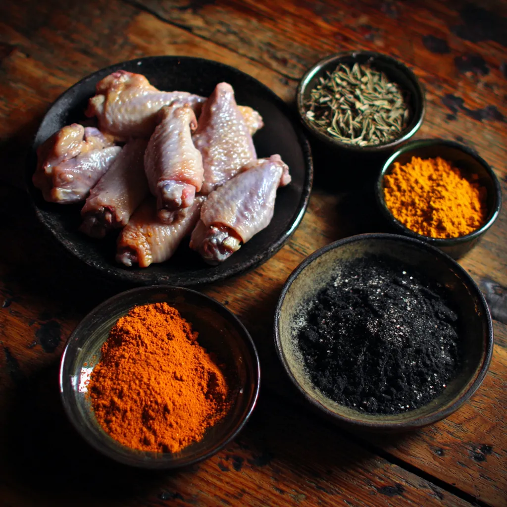 In a large bowl, mix baking powder, smoked paprika, garlic powder, onion powder, salt, pepper, and activated charcoal. Toss drumettes until well coated. Place them on a baking rack over a lined baking sheet. Bake at 400°F (200°C) for 40–45 minutes, flipping halfway, until crispy.