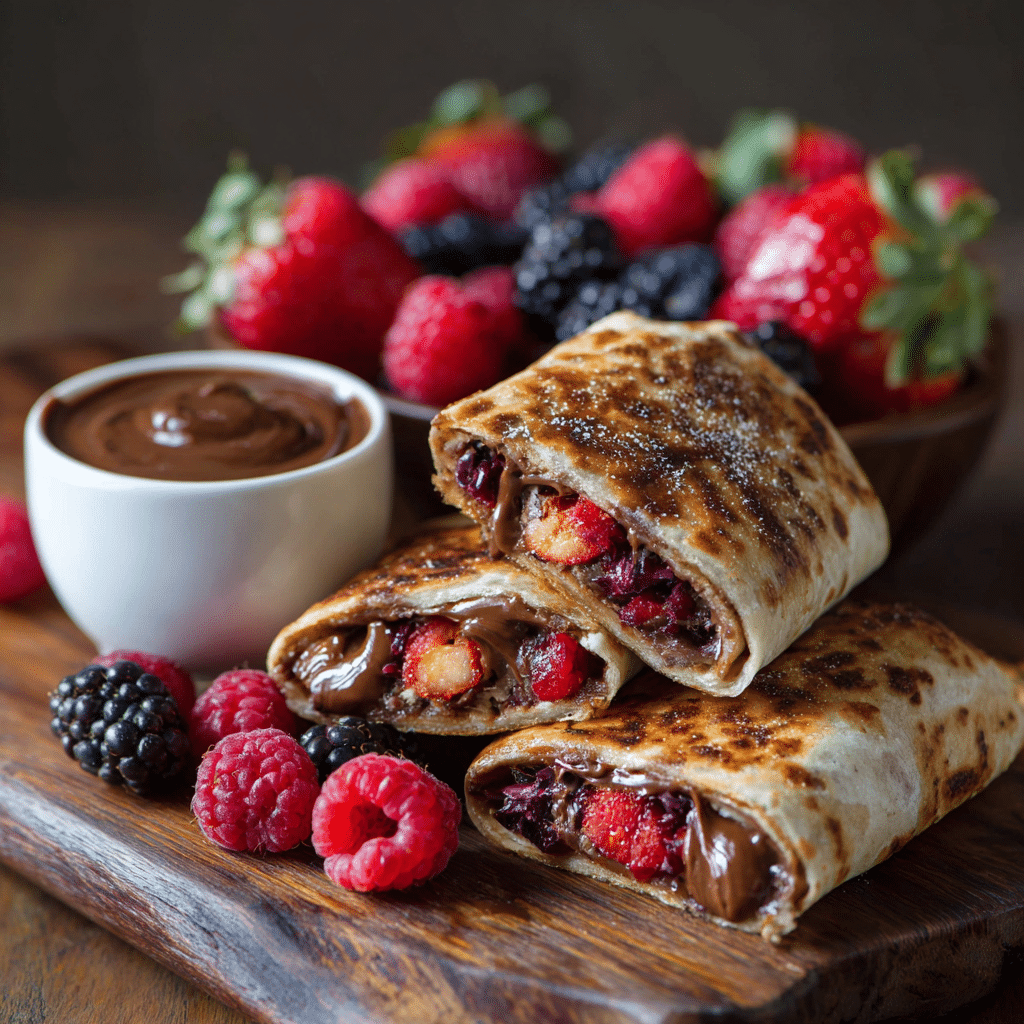 I always choose soft flour wraps because they roll easily and don’t tear. Fresh berries matter sweet strawberries, juicy blueberries, and raspberries with a little tartness. Nutella should be at room temperature so it spreads like silk.