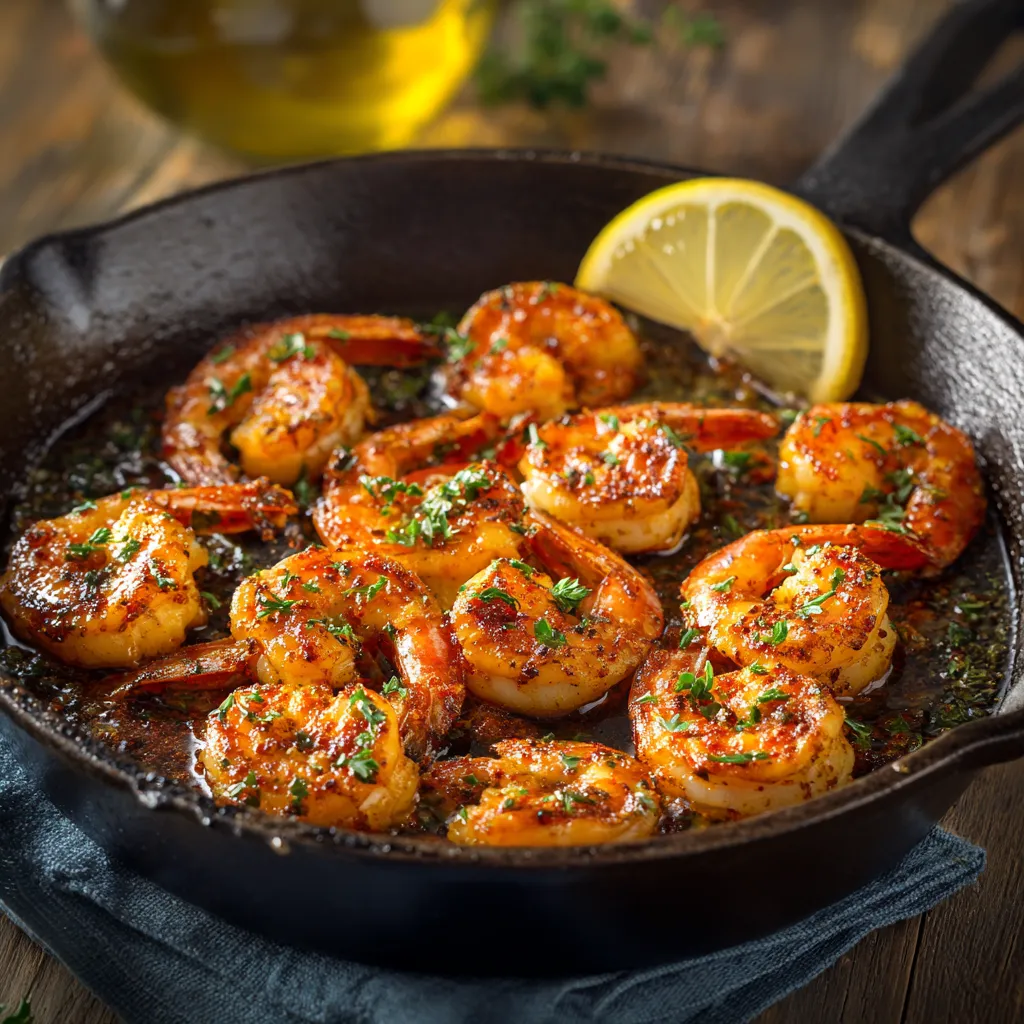 Heat a large skillet or grill pan over medium-high heat. Add the shrimp in a single layer and cook for 2–3 minutes on each side until they turn pink and slightly charred. Squeeze fresh lemon juice and drizzle Worcestershire sauce over them while still hot.