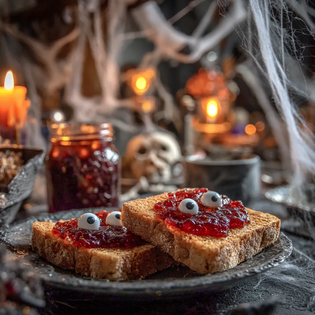 If you’re looking for a recipe that’s fun, simple, and festive, this Bloody Berry Jam Toast with Candy Eyeballs will be the star of your Halloween table.