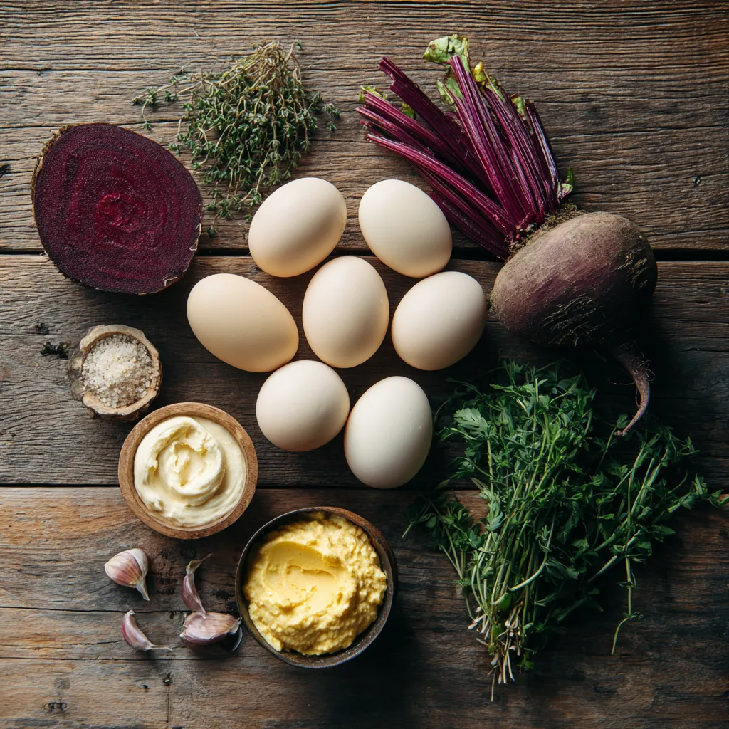 Ingredients for Bloody Deviled Eggs with Beet-Dyed Filling