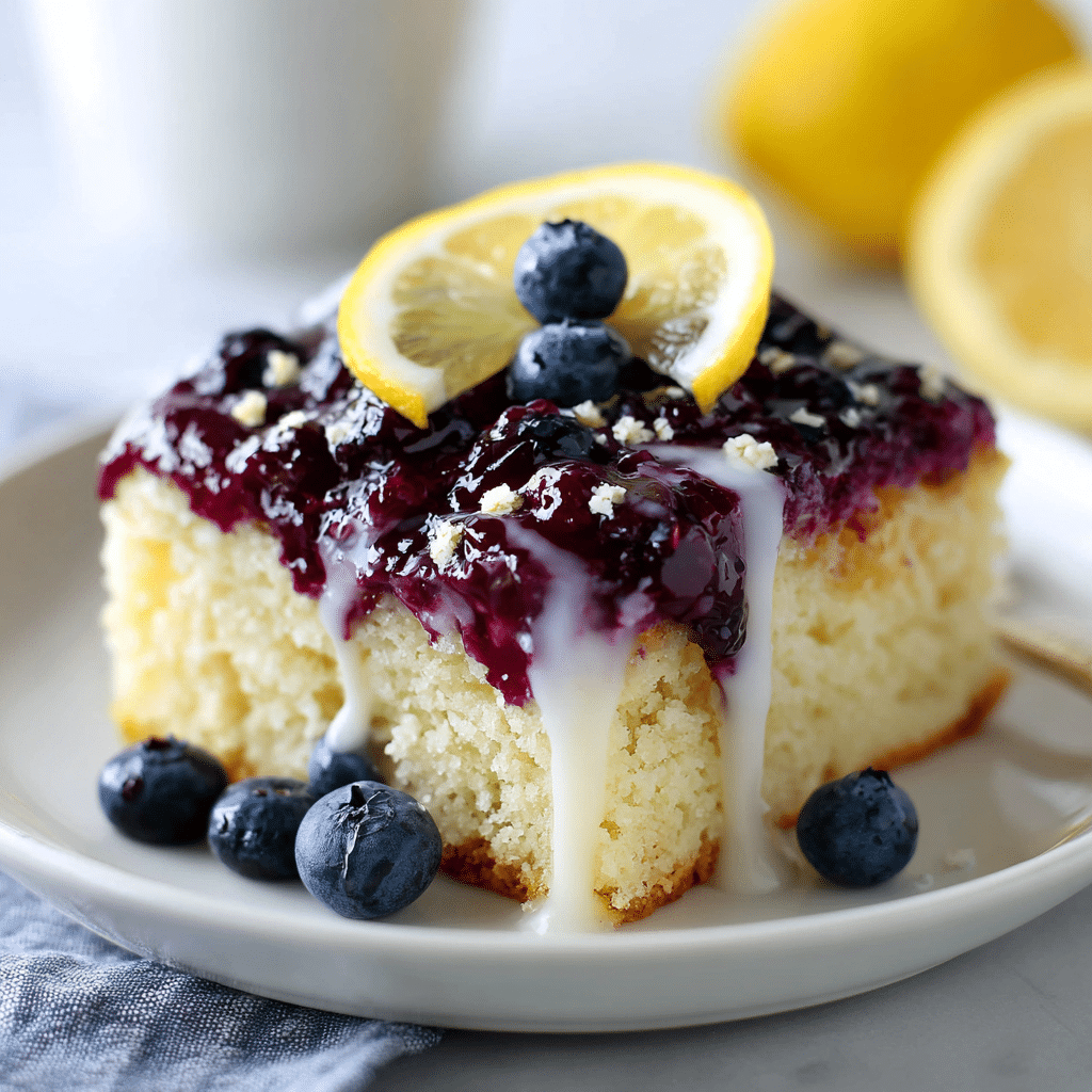 Blueberry Jello Poke Cake with Lemon Glaze – Berry and Citrus Flavor Combo That Feels Like Sunshine