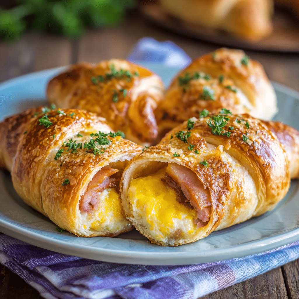 Let crescent dough rest a few minutes at room temperature before rolling. These can be assembled ahead and baked fresh in the morning. Reheat leftovers in the oven for best texture.