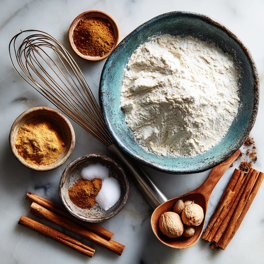 In a large bowl, whisk together flour, baking soda, baking powder, salt, cinnamon, nutmeg, and ginger. This ensures all your spices blend evenly.