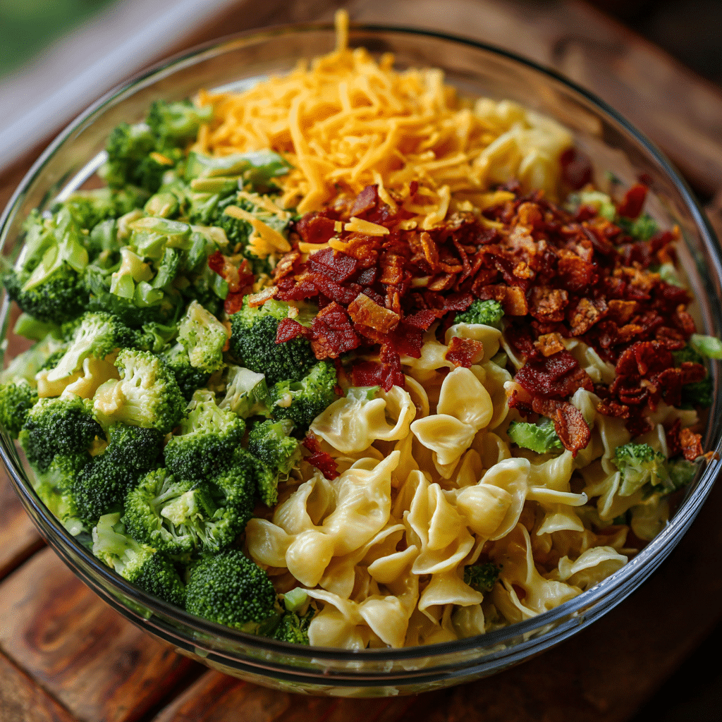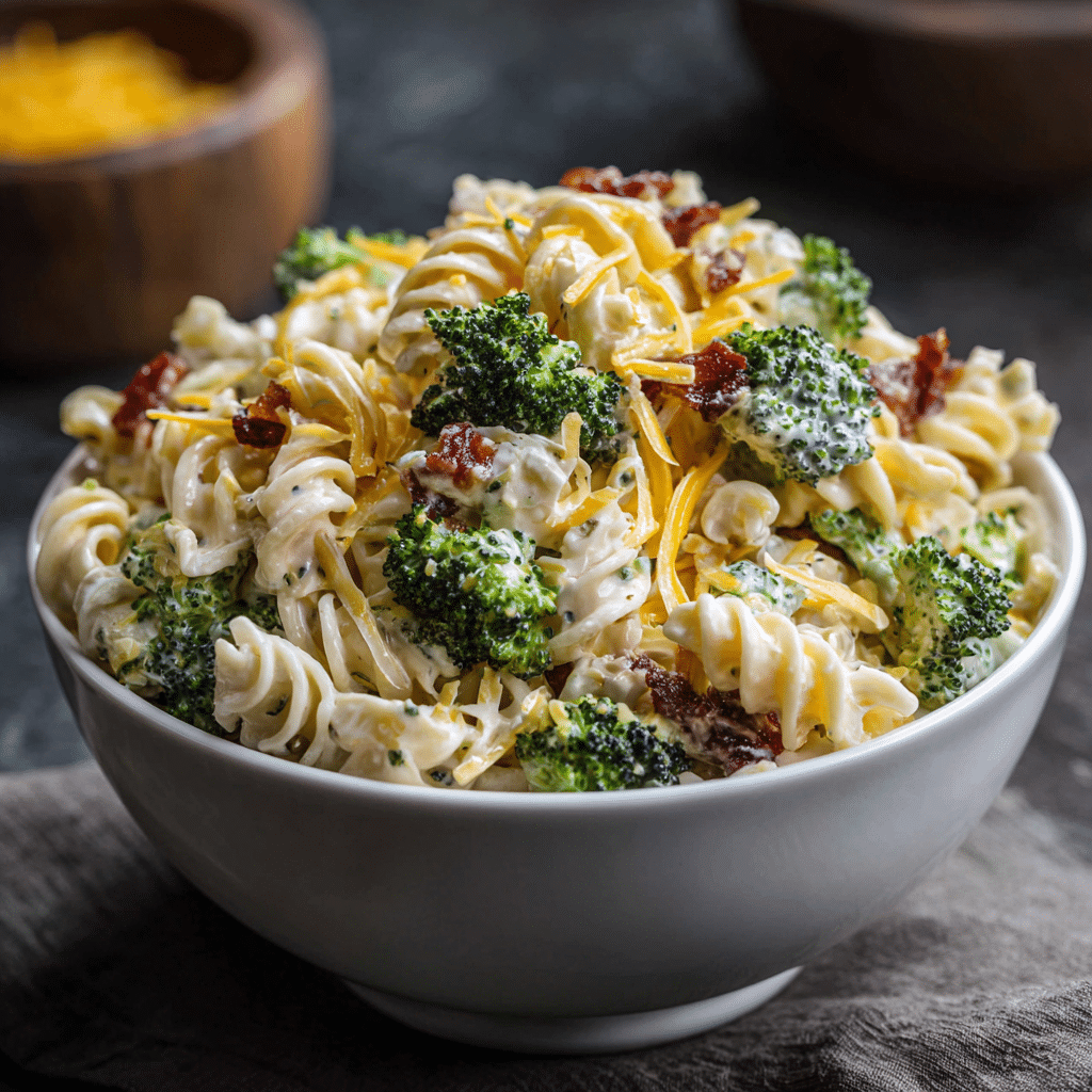 I use short pasta because it holds the sauce better. I choose broccoli with tight green florets and firm stems. I always grate my cheddar by hand because it melts more smoothly and tastes richer. For the dressing, I keep it creamy but not heavy, so every bite feels balanced.