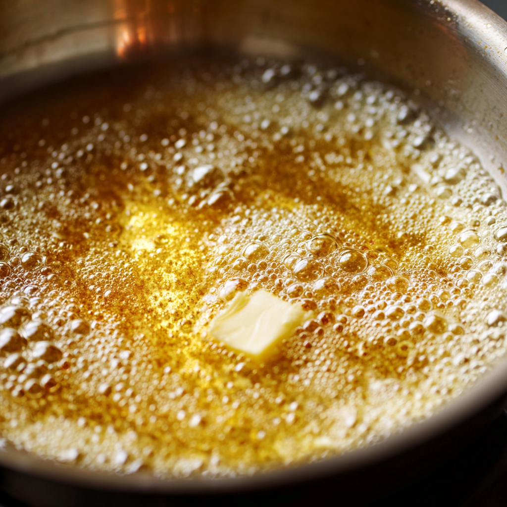 Place the butter in a saucepan over medium heat. Stir often as it melts, foams, and then turns golden brown with a nutty aroma. Be careful not to burn it. Once browned, remove from heat and let it cool slightly.