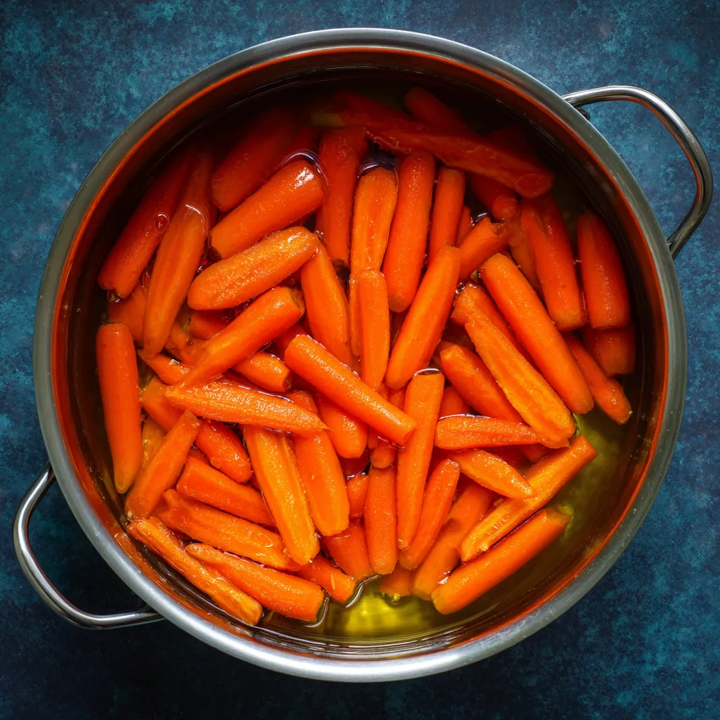 Bring a large pot of salted water to a boil. Add the carrots and cook for about 6–8 minutes, or until they’re tender but not mushy. Drain them well and set aside.