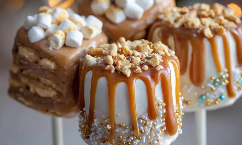 So if you’re looking for a no-bake Christmas treat that’s fun, nostalgic, kid-friendly, perfect for gifting, and guaranteed to spread holiday joy, you’ve just found it. These Caramel Marshmallow Christmas Pops bring together creamy caramel, fluffy marshmallows, chocolate drizzle, and enough sparkle to light up the season.