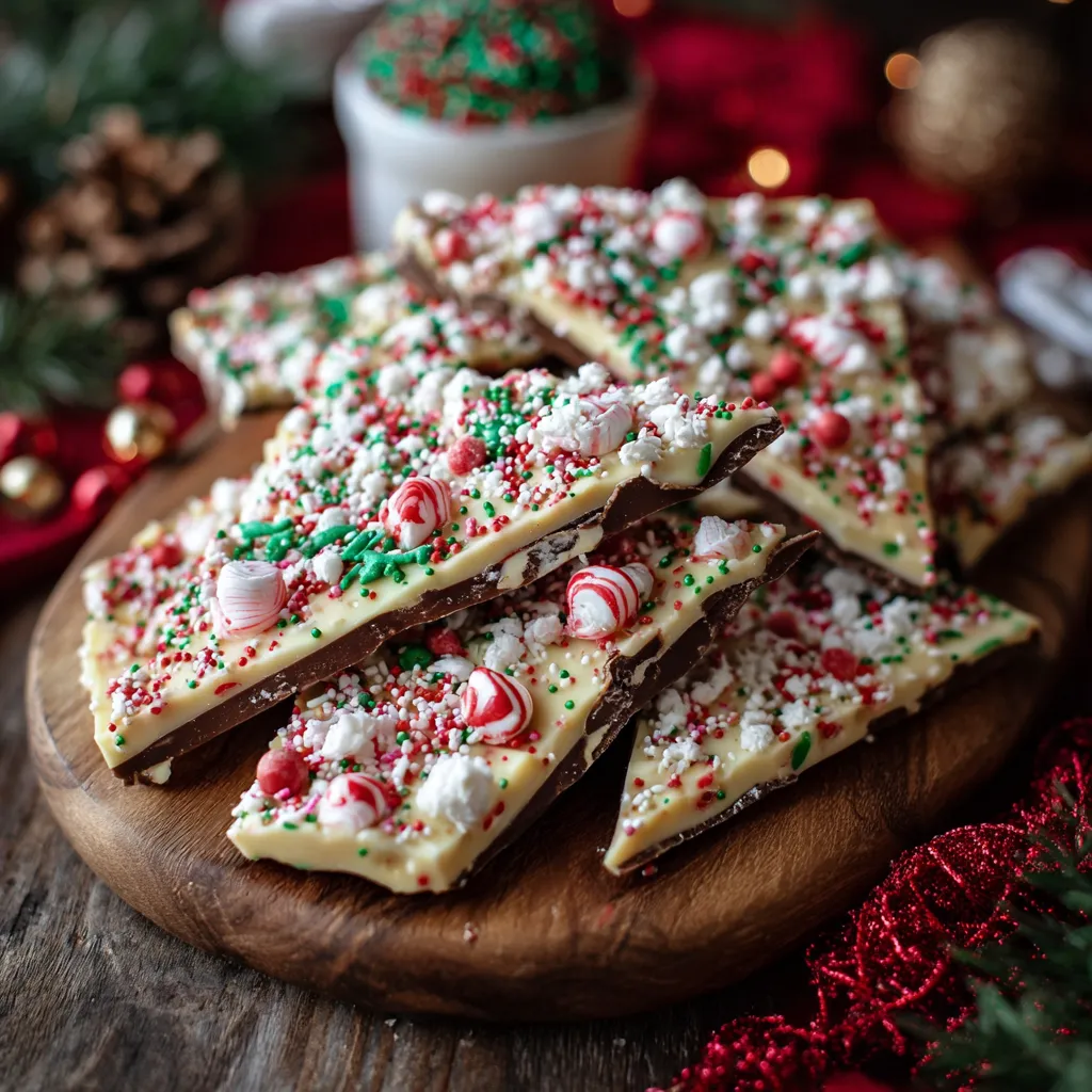 When I was a little girl, my grandmother didn’t make bark, of course this wasn’t a traditional Greek recipe but she always believed that dessert should feel like a celebration. She used to say, “If your plate isn’t as bright as your heart, add something colorful.” Christmas Sprinkle Bark is exactly that bright, fun, sweet, and filled with a little holiday magic. Every year, as I melt the chocolate and swirl the layers together, I remember standing beside her, mixing pots and sprinkling nuts over cookies, giggling as we made a mess together.