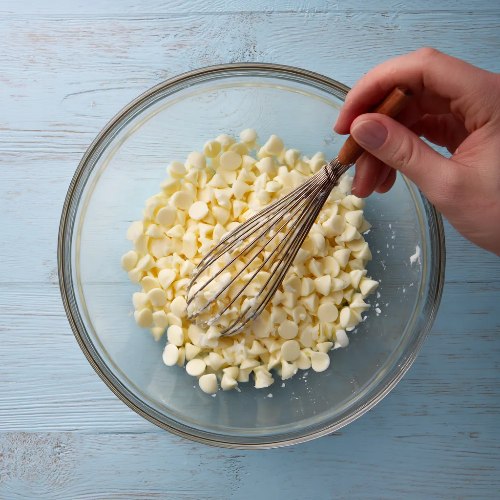 In a microwave-safe bowl, heat the white chocolate chips in 20–30 second intervals. Stir between each round until smooth.