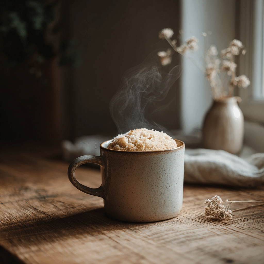 I microwave it carefully, watching as it rises like a little miracle. I stop when the top looks just set. I let it rest for a moment, because even a mug cake needs a breath before being eaten.