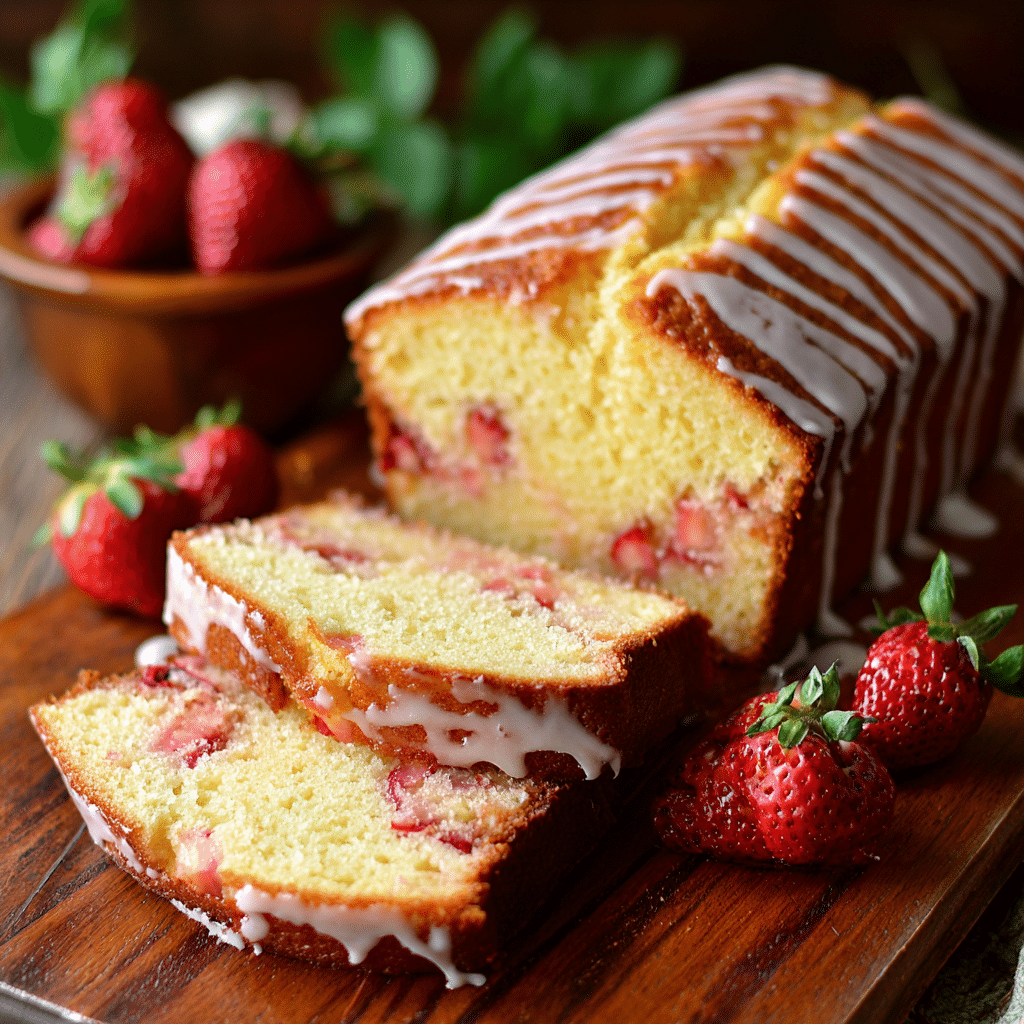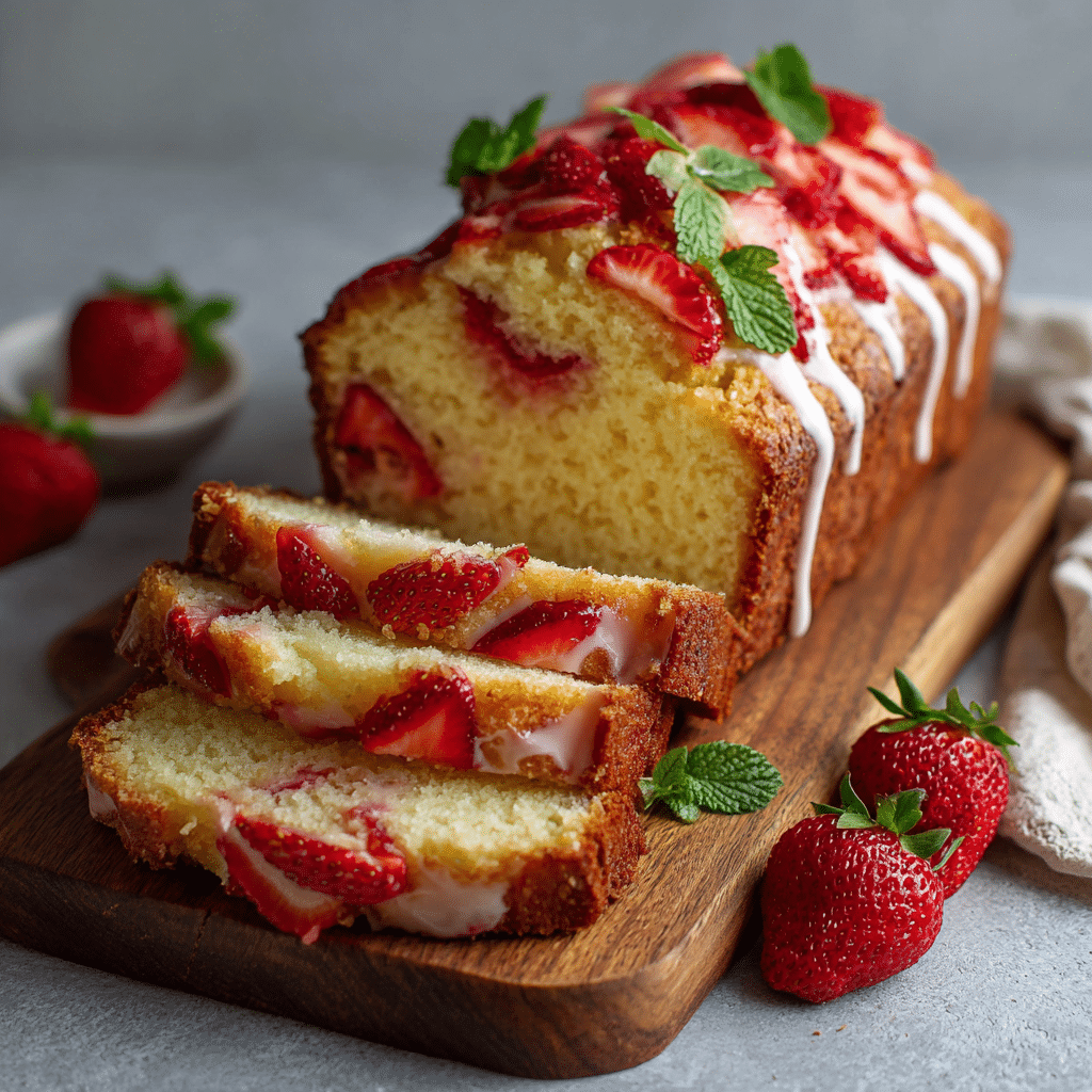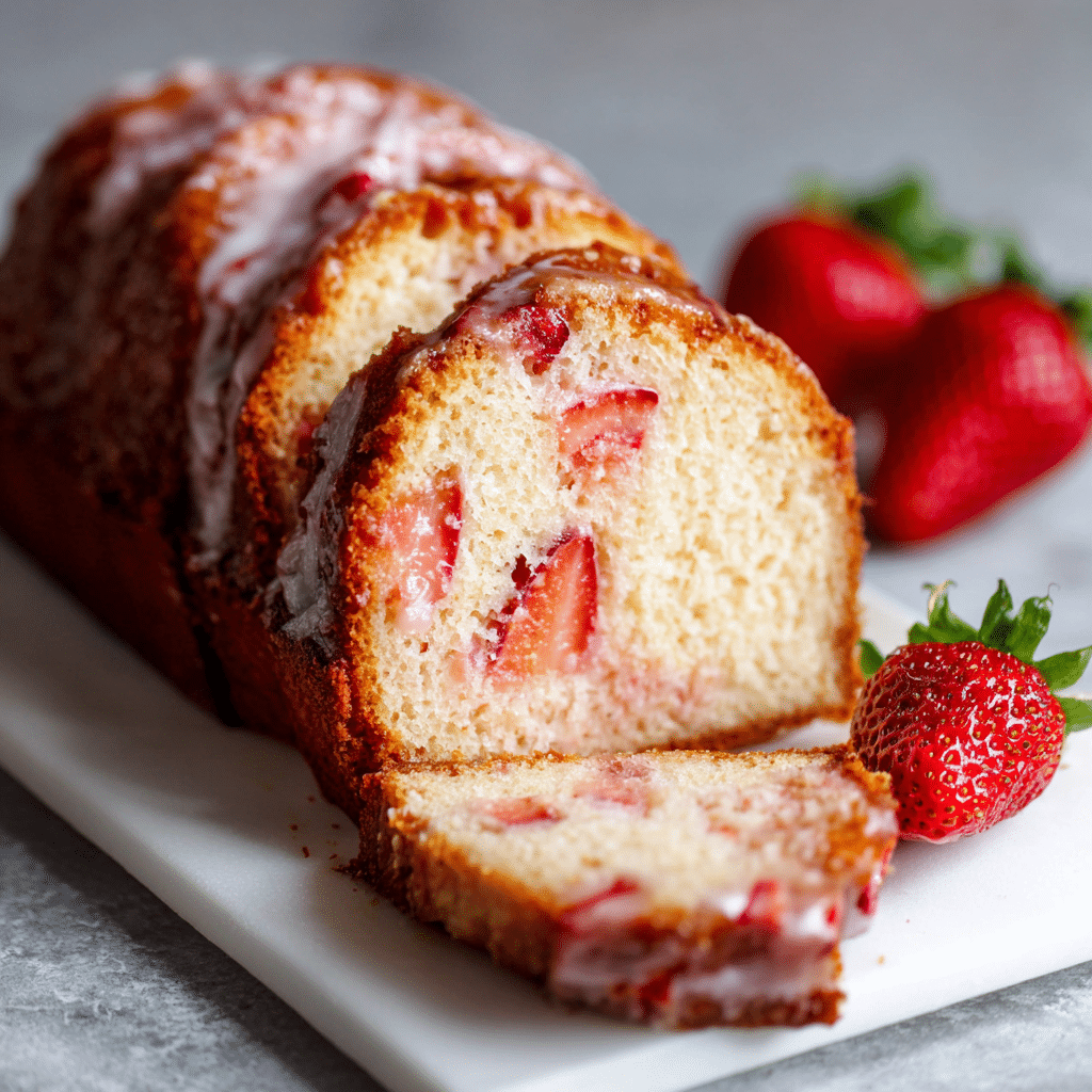 Tips: Use room-temperature butter, eggs, and milk for the smoothest batter and best rise. Coat strawberries in flour to help prevent sinking. If the top browns too quickly, tent loosely with foil during the last 15–20 minutes. Substitutions: You can swap half the strawberries for blueberries, or add 1/2 teaspoon almond extract for a bakery-style flavor. Storage: Wrap tightly and keep at room temperature for up to 3 days, or refrigerate up to 5 days. Freezing: Wrap slices individually and freeze up to 2 months; thaw at room temperature or warm briefly.