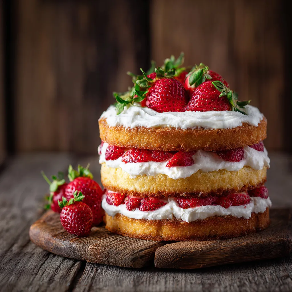 This classic strawberry shortcake layer cake brings together fluffy vanilla cake, juicy strawberries, and light whipped cream for a truly timeless dessert. Inspired by my grandmother’s Crete kitchen, it’s a simple, beautiful cake that celebrates sweetness and love. Perfect for birthdays, tea parties, or summer picnics, every slice melts in your mouth with fresh, fruity flavor. Follow this easy recipe to create a dessert that feels like sunshine on a plate a soft, creamy, and utterly delicious treat to share with your favorite people. Baking joy has never been this sweet!