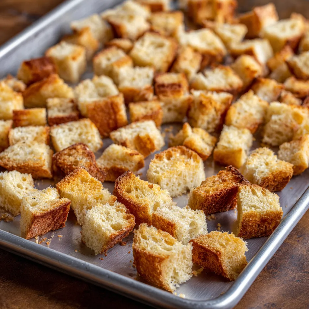 1️⃣ Toast the bread cubes.