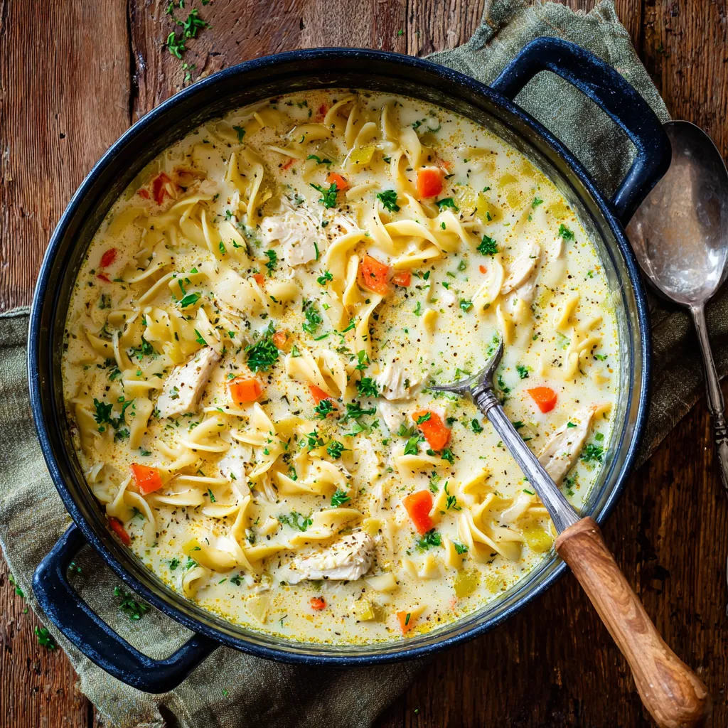 Hi, I’m INAYA 38, a home cook from the beautiful island of Crete in Greece. Cooking has been part of my life since childhood, and soups were always my favorite. There’s something magical about stirring a pot and watching everyday ingredients transform into a bowl of love. When I first discovered the American-style creamy chicken noodle soup, I felt that same warmth I grew up with just in a richer, thicker, more indulgent way.