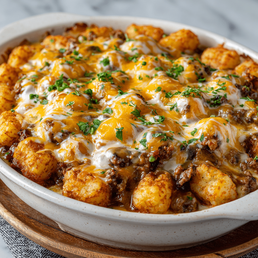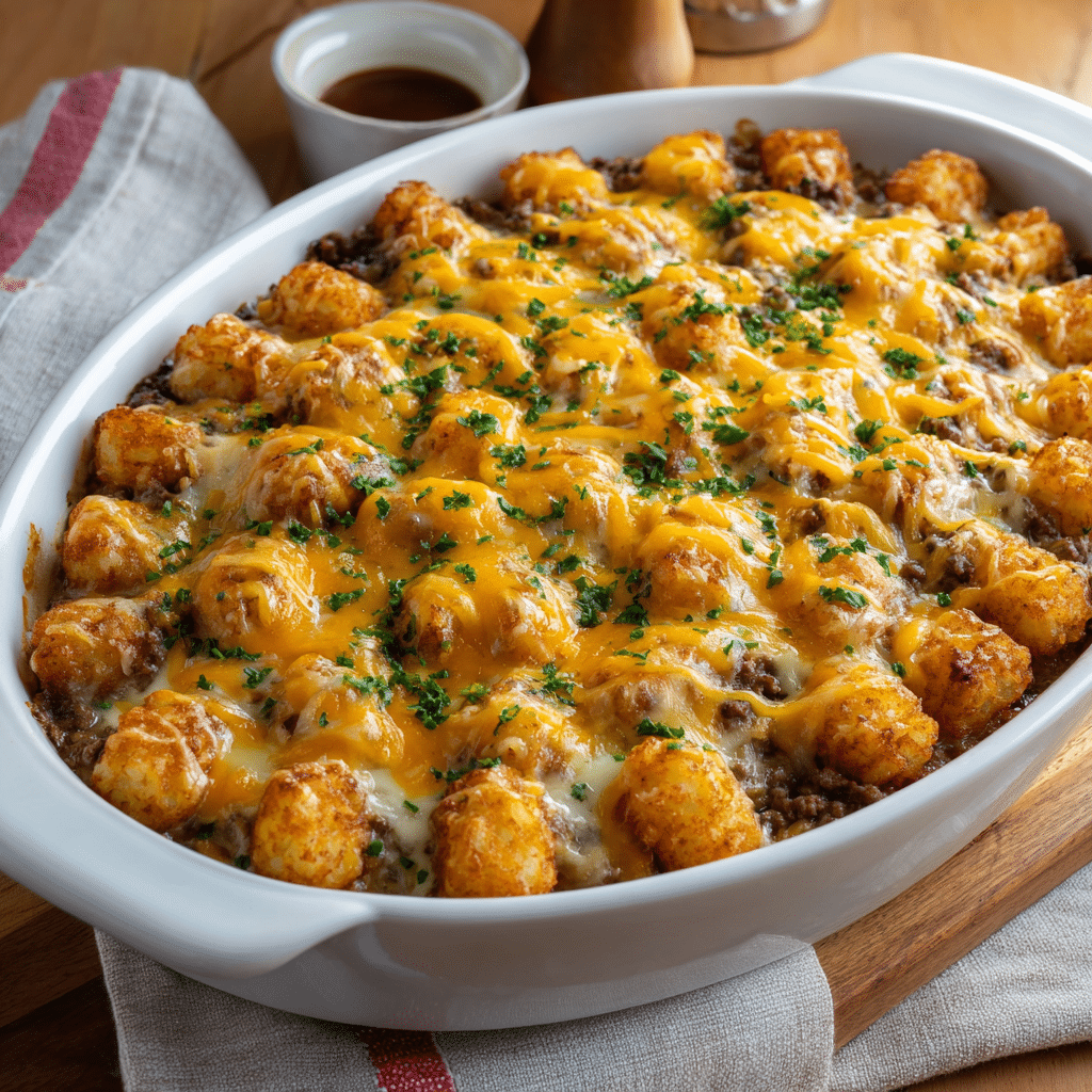 Storage: Store leftovers covered in the fridge for up to 3 days. Reheat in a 350°F (175°C) oven for 15–20 minutes to re-crisp the tots, or microwave for convenience.