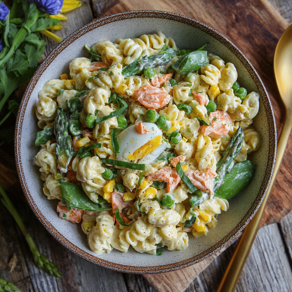 I use short pasta with curves because they hold the creamy dressing beautifully. I choose full-fat Greek yogurt and mayonnaise for balance, not heaviness. Fresh vegetables bring crunch and color, and herbs add that spring perfume that makes people close their eyes after the first bite.