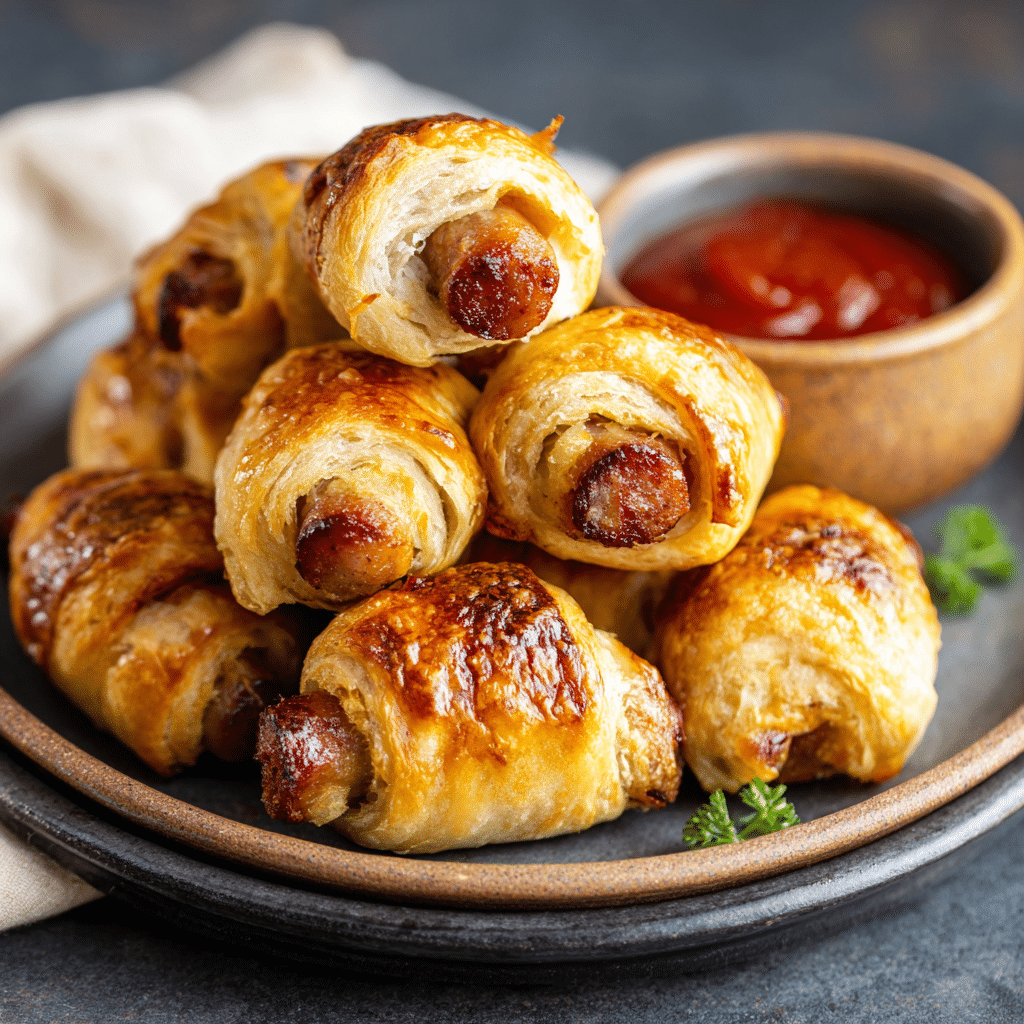 These Crispy Golden Pigs in a Blanket are flaky, buttery, and deeply comforting. Juicy mini sausages wrapped in soft dough and baked until golden make the perfect snack, appetizer, or family treat.