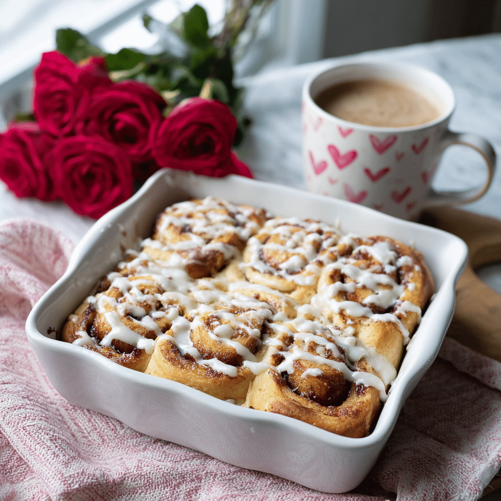 This Easy Cinnamon Roll Valentine Bake is my favorite way to say “I love you” without stress. Soft cinnamon rolls, rich cream, warm spices, and sweet icing come together in one cozy dish. I cut, pour, bake, and share. It’s perfect for Valentine’s morning, brunch with friends, or a quiet moment of self-love. Simple ingredients, big comfort, and the kind of warmth that fills both the kitchen and the heart.