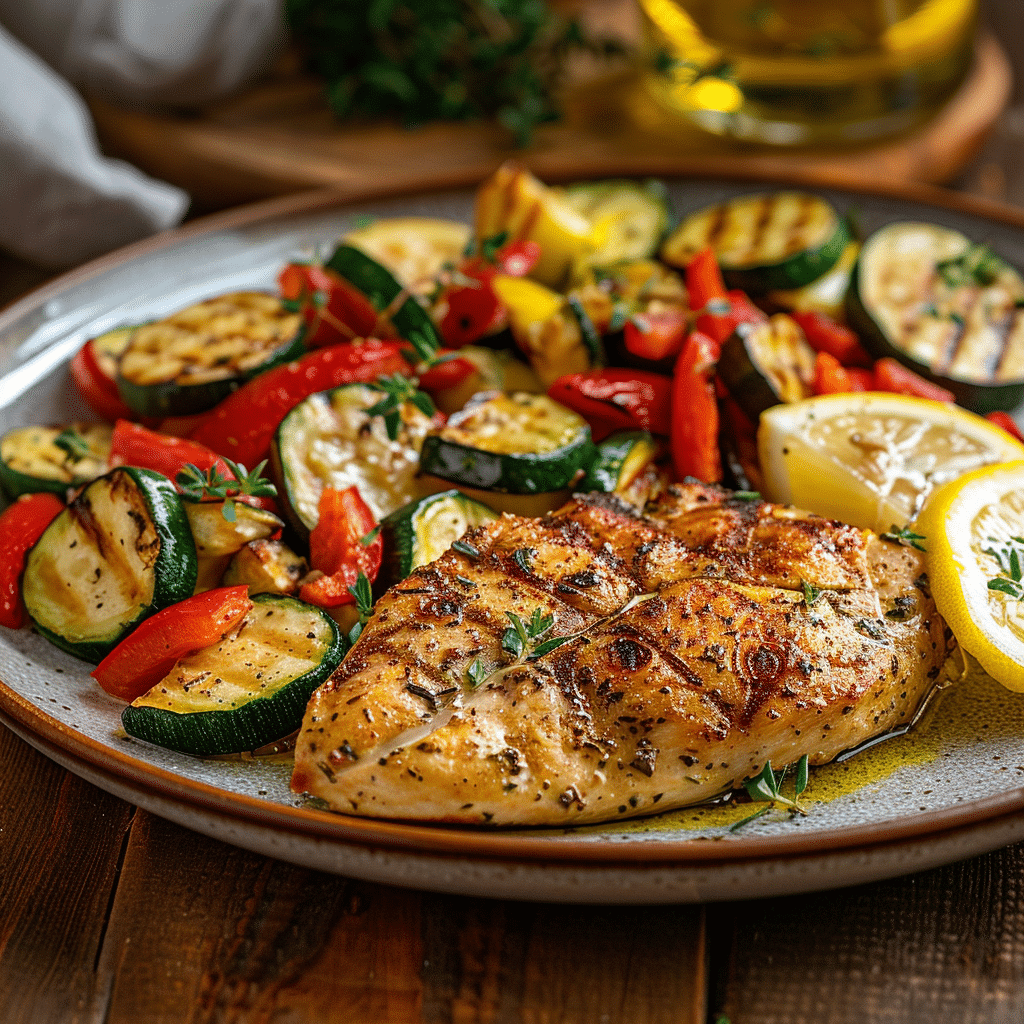 This easy healthy dinner recipe with chicken is light, flavorful, and perfect for busy evenings. Made with olive oil, lemon, garlic, and fresh vegetables, it delivers comfort and nourishment in every bite.