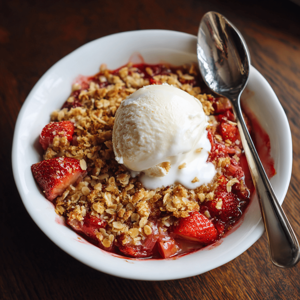 Fresh fruit gives the best flavor, but if you use frozen strawberries or rhubarb, thaw and drain them first to avoid excess liquid. The cornstarch helps thicken the filling, so do not skip it. For extra texture, you can add chopped walnuts or almonds to the topping. Store leftovers covered in the refrigerator for up to 4 days and reheat in the oven or microwave before serving.