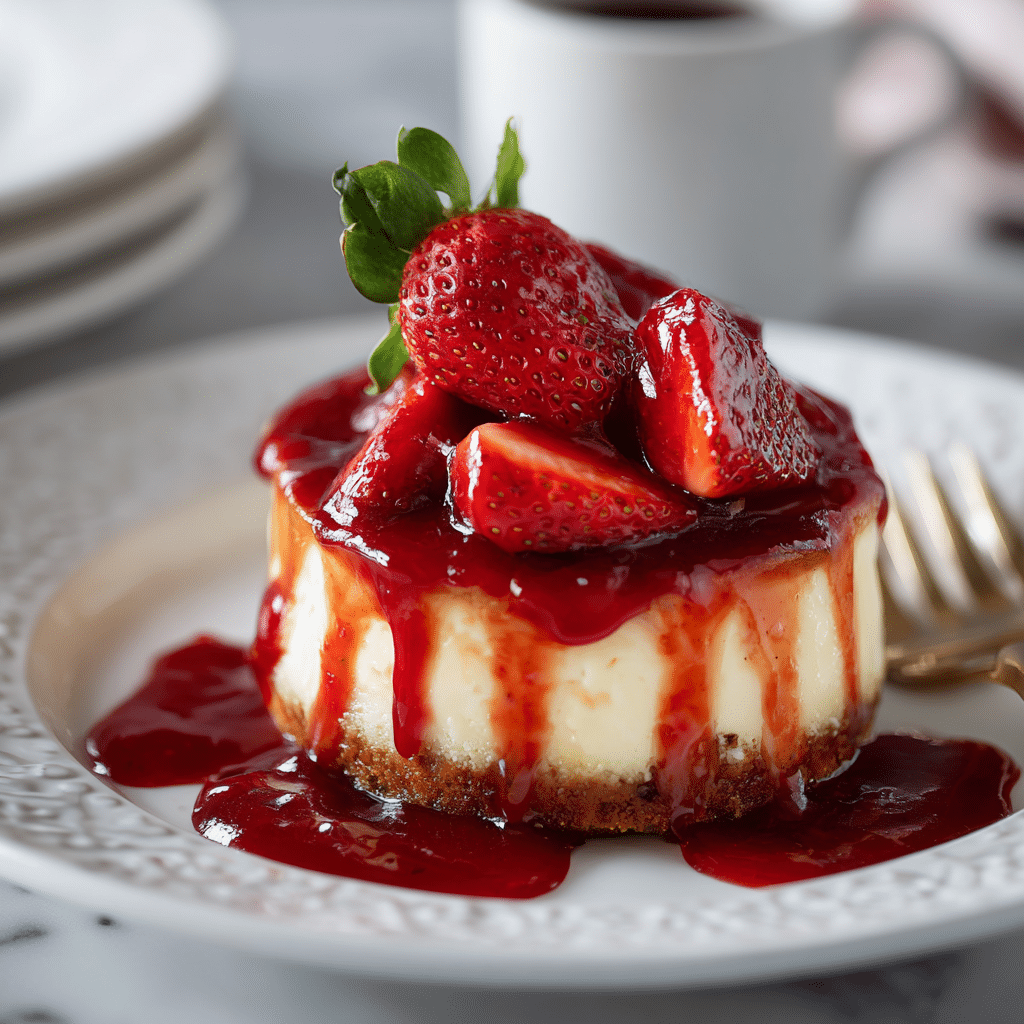 When I host family dinners, I slice the cheesecake first. Then I spoon the strawberry sauce over each slice individually. I love watching the red sauce drip slowly down the creamy sides.
