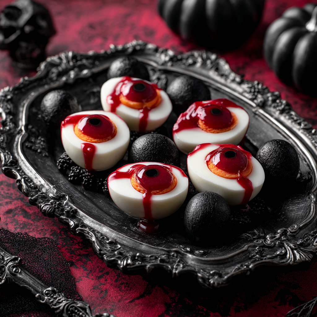 Serve your Eyeball Hard-Boiled Eggs with Ketchup Veins on a dark platter for maximum Halloween drama. You can scatter a few plastic spiders around the plate, add some lettuce for “eyeball nests,” or even drizzle extra ketchup for a “bloody” effect.