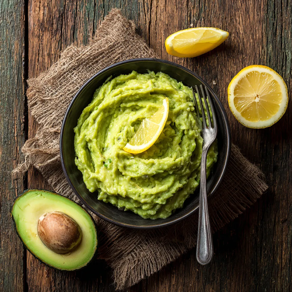 Cut open the ripe avocado, remove the pit, and scoop the flesh into a bowl. Add lemon juice, a pinch of salt, and black pepper. Mash with a fork until smooth and creamy.