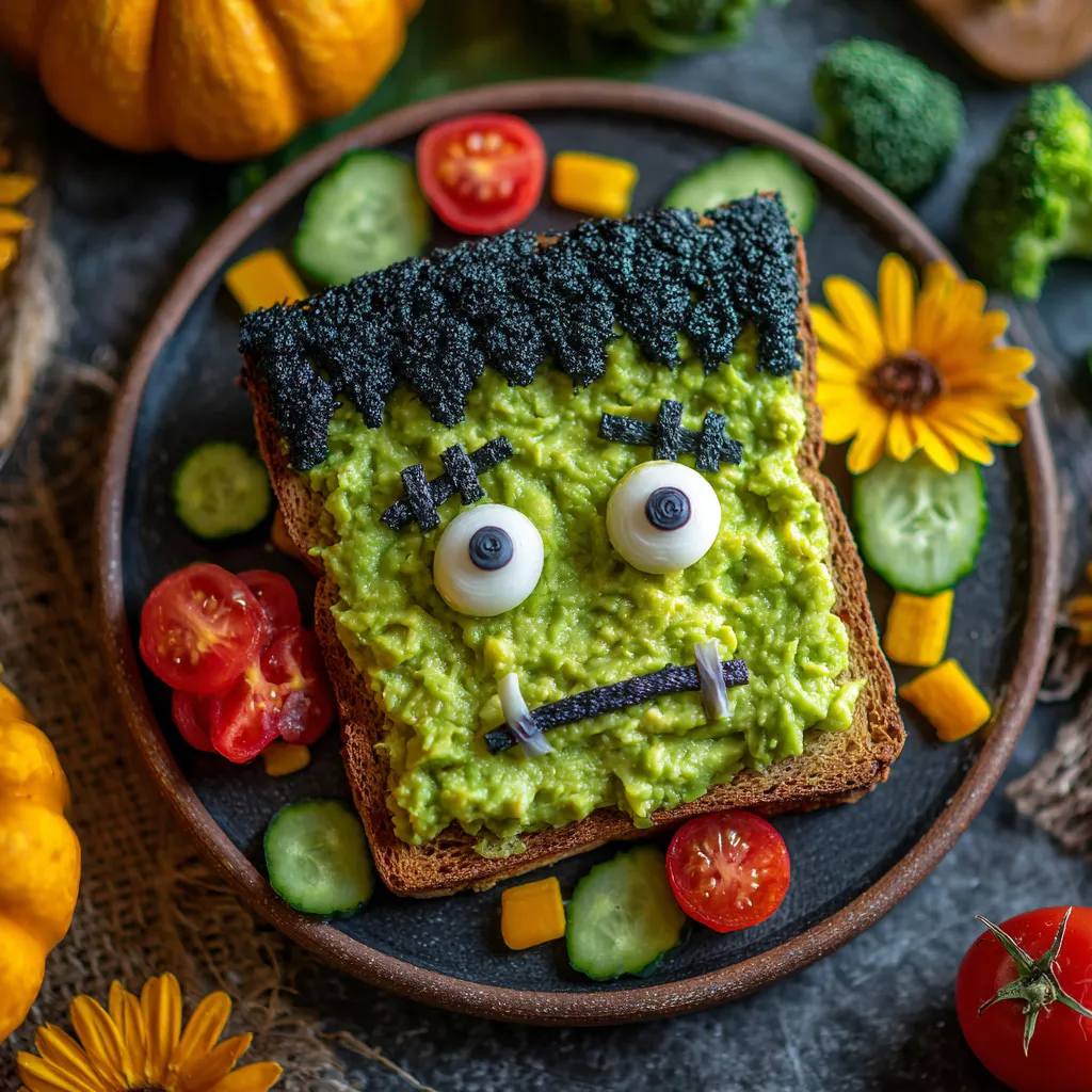 Frankenstein Toast with mashed avocado and veggie decorations proves that healthy food can be both fun and nourishing. It’s quick, playful, and packed with flavor — perfect for kids and adults alike.