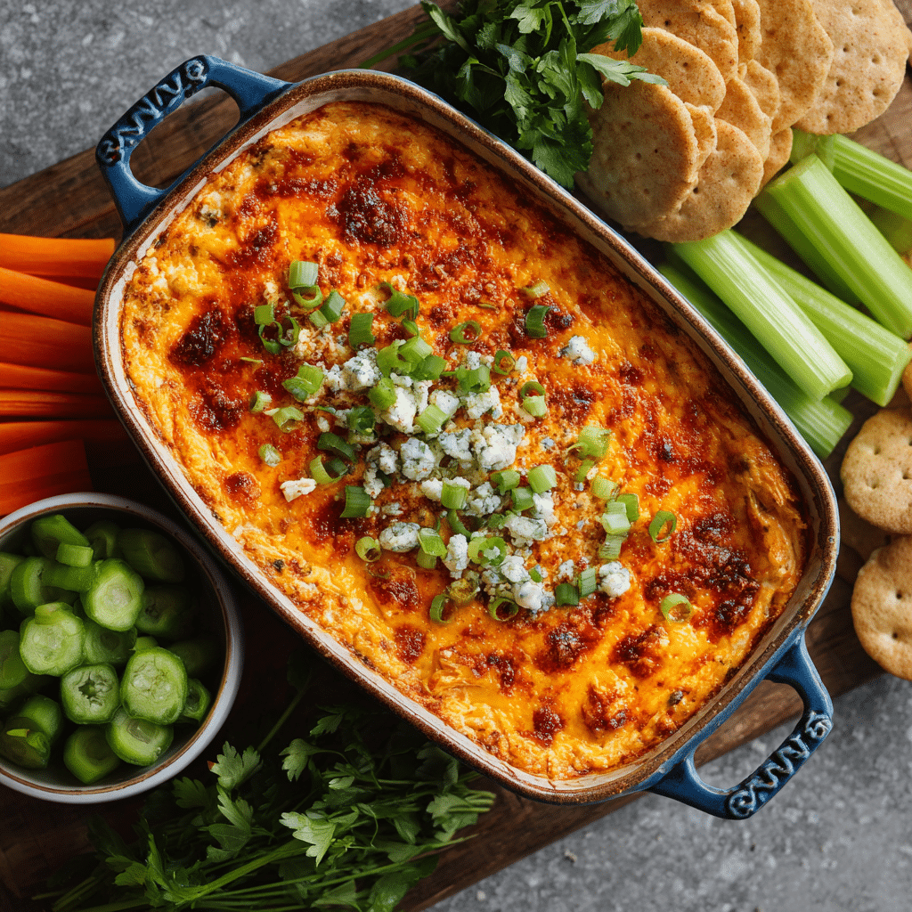 This Game Day Buffalo Chicken Dip Recipe is creamy, spicy, and deeply comforting. I make it with tender shredded chicken, silky cream cheese, tangy Greek yogurt, and bold Buffalo sauce, then bake it until bubbly and golden. It’s the kind of warm, shareable dip that disappears fast on game day, at parties, or during cozy family nights—serve it with chips, toasted bread, or crunchy veggies for the perfect bite.