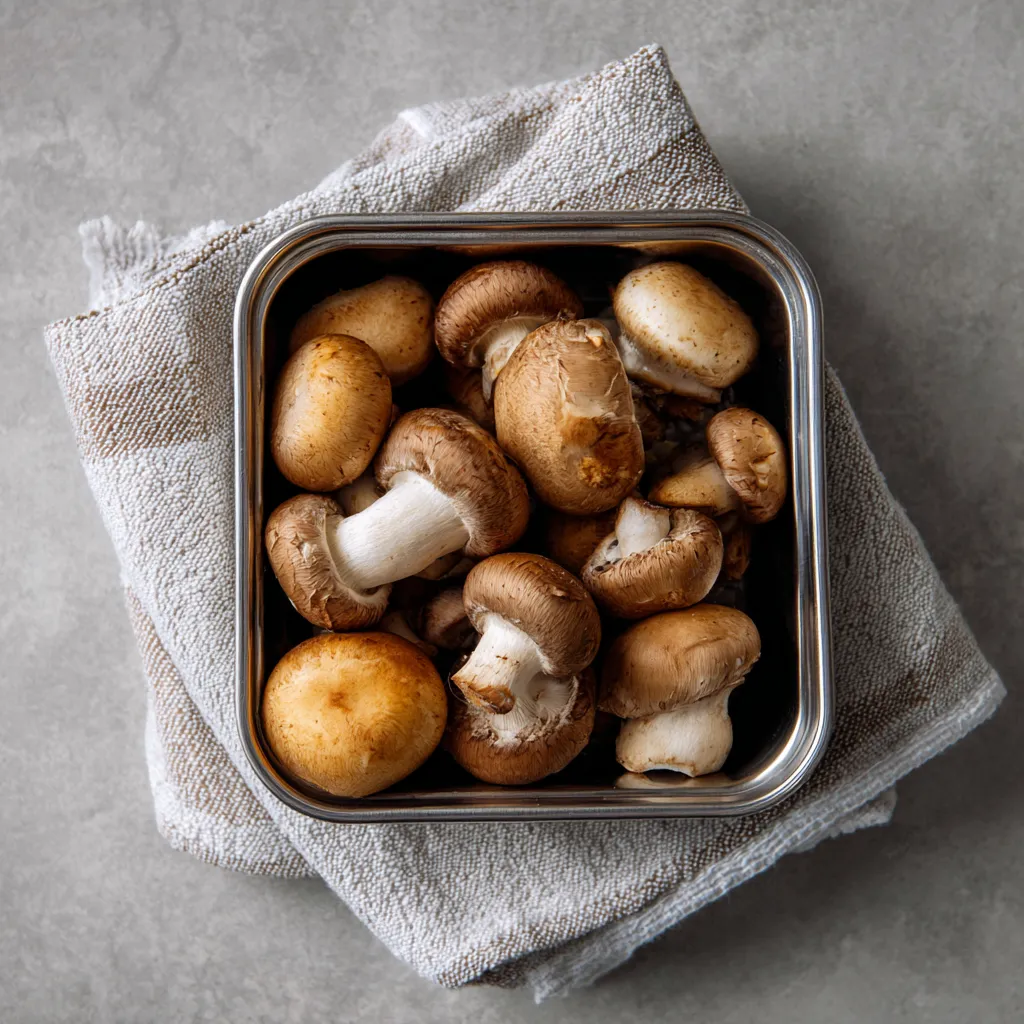 Start by cleaning your mushrooms with a damp paper towel or soft brush don’t soak them in water or they’ll become soggy. Trim the ends if needed, and keep small mushrooms whole while halving or quartering larger ones for even cooking.