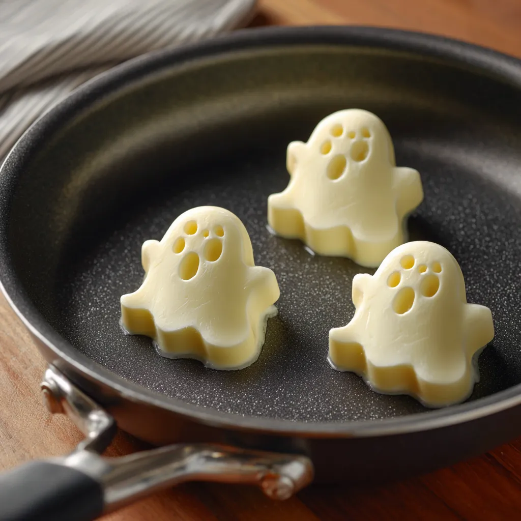 Lightly grease your ghost-shaped egg mold with a touch of olive oil or butter. This prevents sticking and ensures a clean shape. Place the mold in a heated nonstick pan.