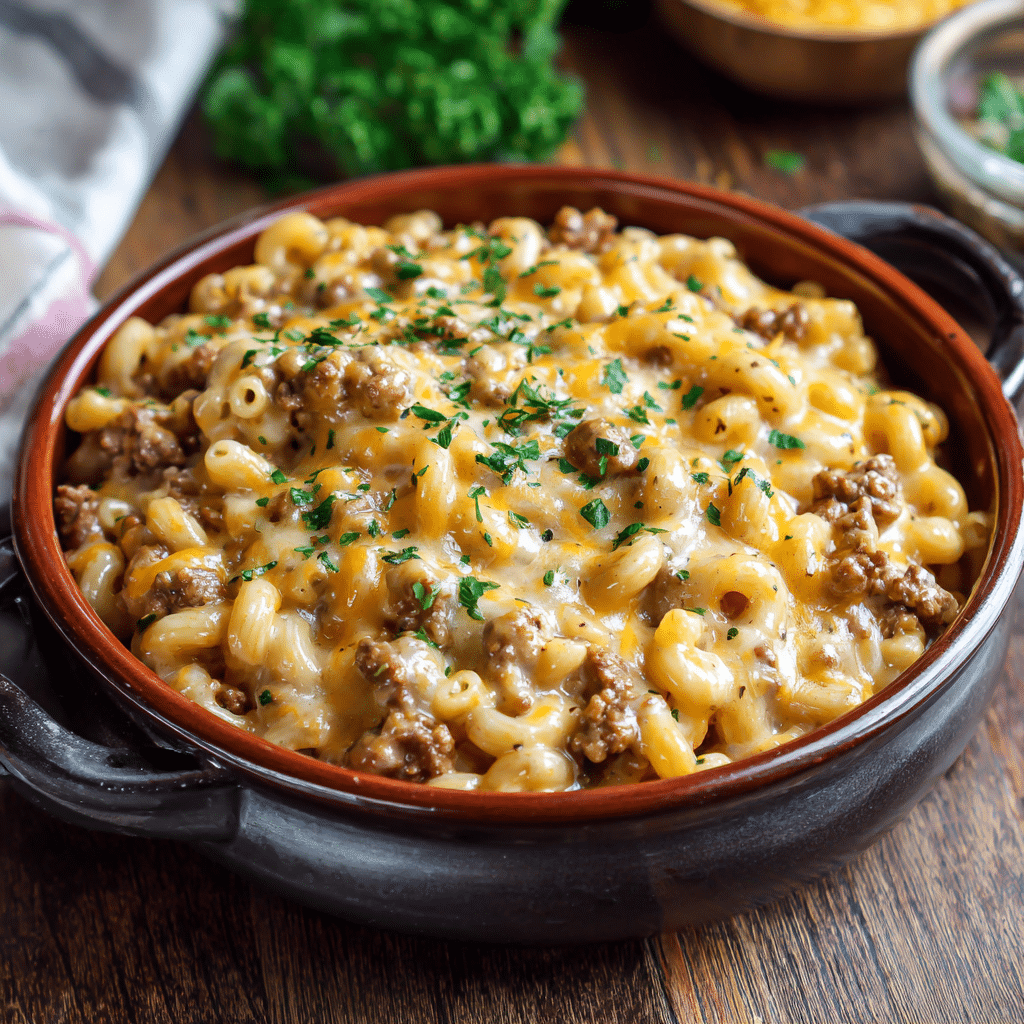 This Ground Beef Mac and Cheese is creamy, hearty, and deeply comforting. I cook tender pasta, brown seasoned ground beef, and fold everything into a rich homemade cheese sauce. The result is a warm, filling meal that brings everyone together. I love how flexible it is and how it always feels like home. Perfect for busy nights, family dinners, or when you simply need comfort in a bowl.