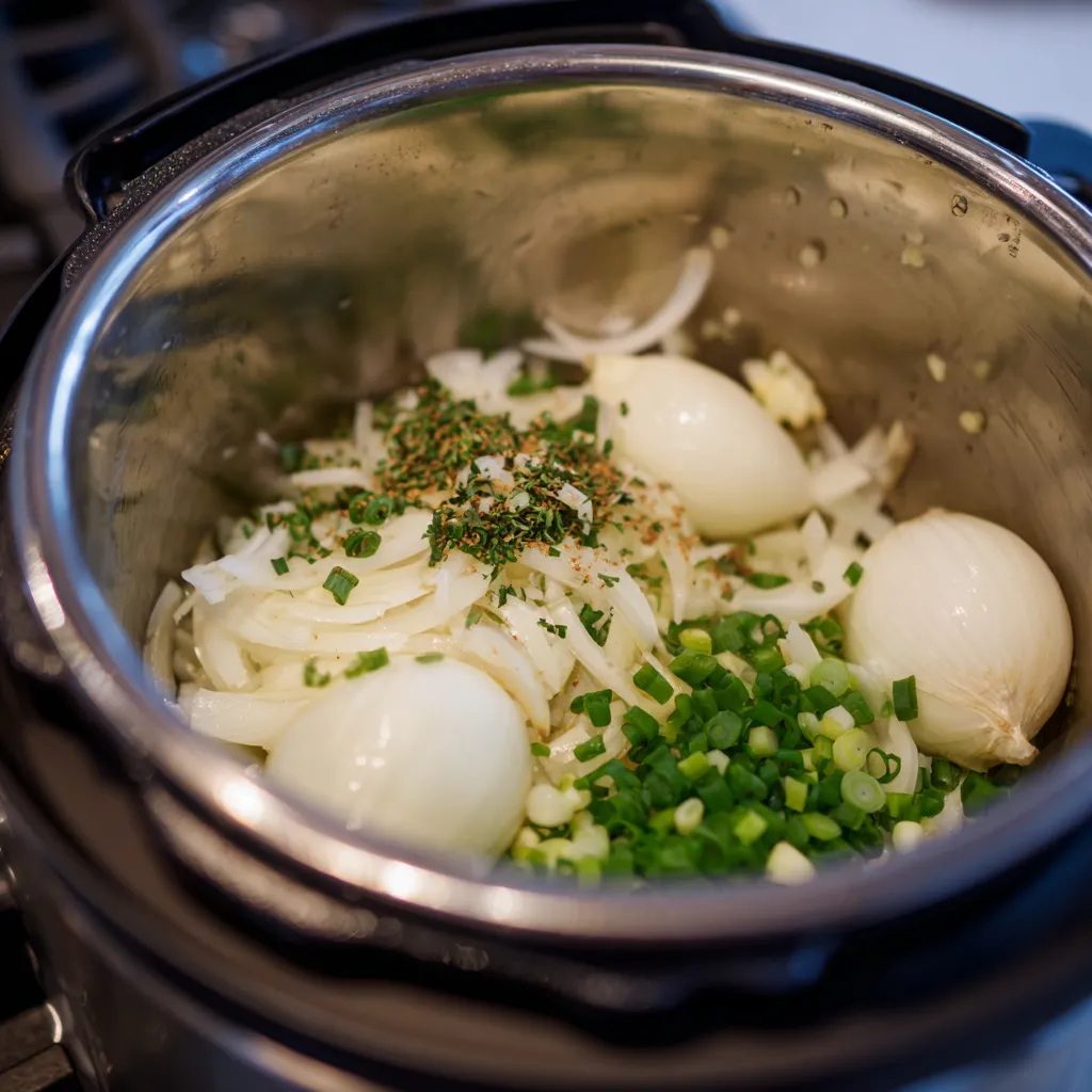 Turn your Instant Pot to Sauté mode. Melt the butter, then add the onions and garlic. Sauté for 2–3 minutes until fragrant.
