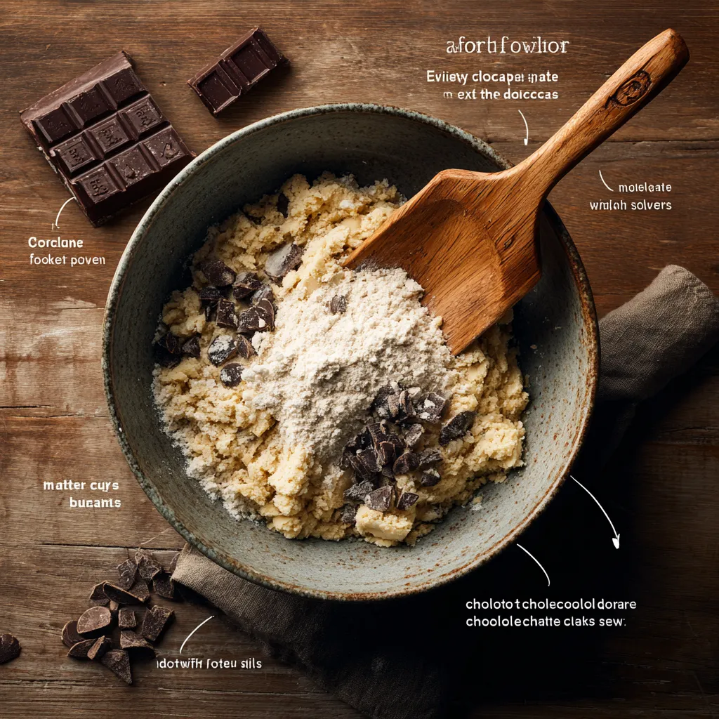 Sift in the flour, baking soda, and salt. Stir gently with a spatula until just combined. The dough will be thick but soft.