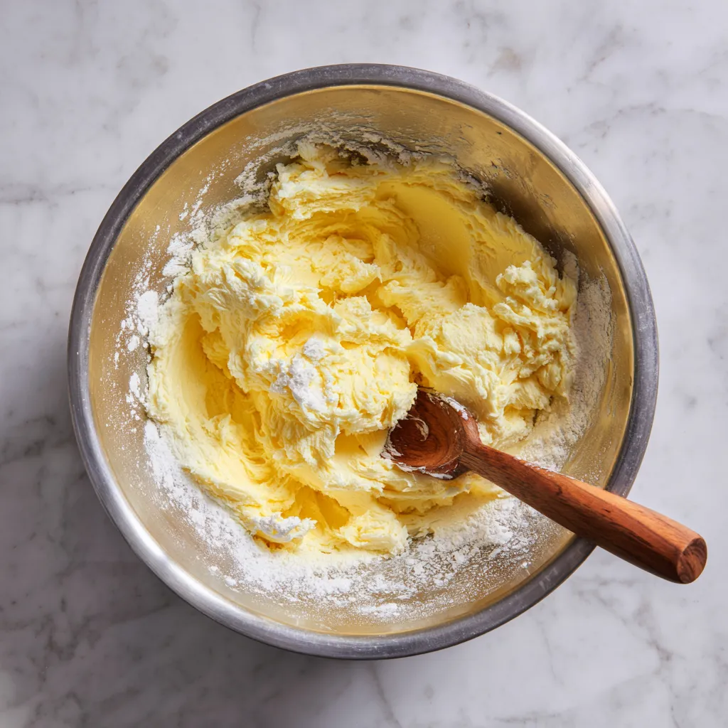 In a large mixing bowl, beat the softened butter and powdered sugar until light and fluffy. This step helps create the soft, melt-in-your-mouth texture.