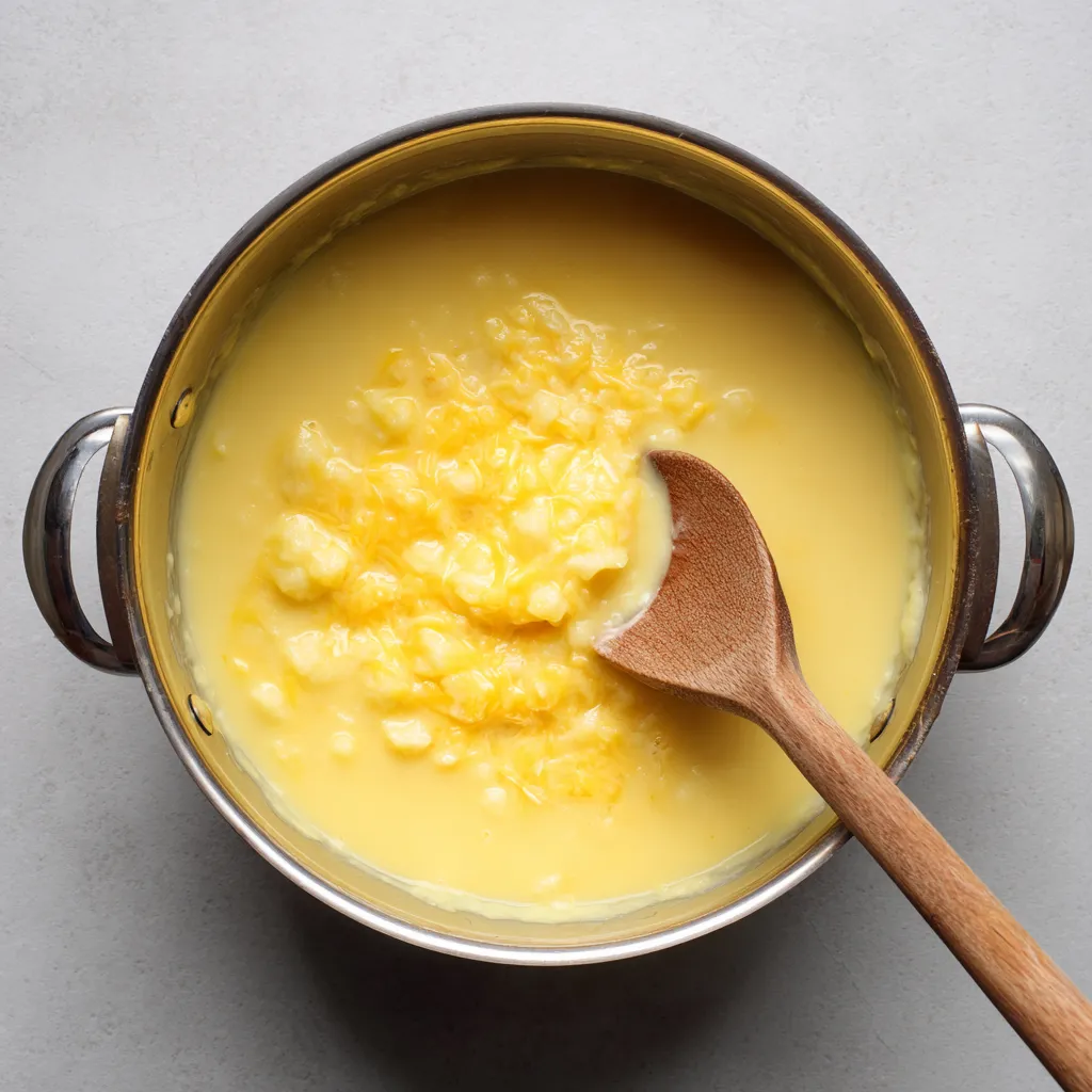 - Lower the heat and add cheddar cheese. Stir until melted and silky.