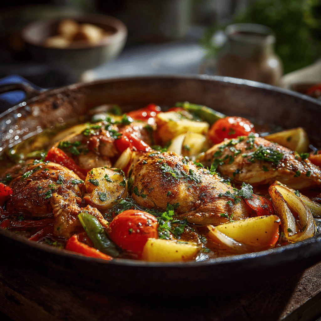 This low carb healthy dinner recipe is simple, comforting, and full of Mediterranean flavor. Juicy chicken, colorful vegetables, and olive oil come together in one easy pan for a nourishing and satisfying meal.