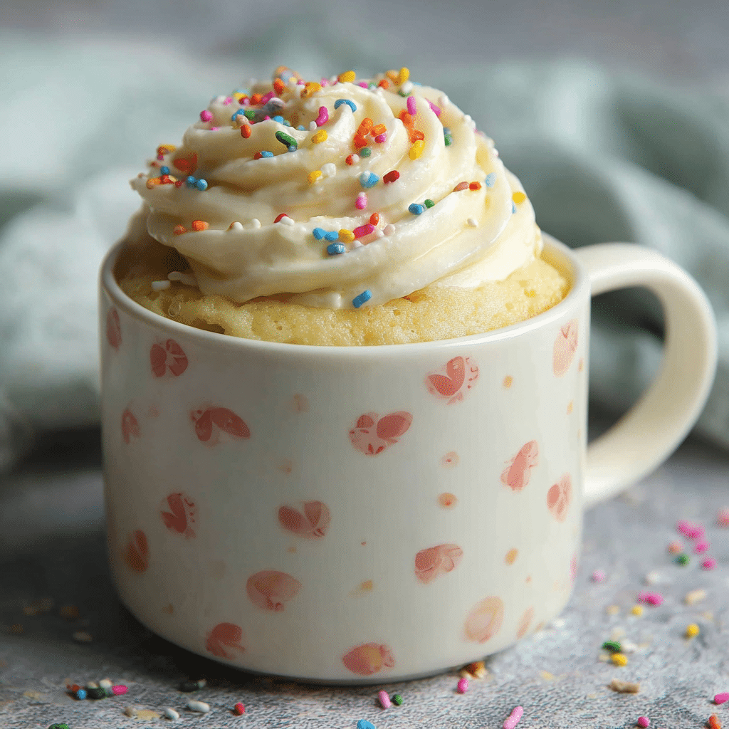 This microwave vanilla mug cake with frosting is a soft, fluffy single-serving dessert made in minutes. Perfect for late-night cravings, cozy afternoons, or when you want something sweet without baking a full cake.