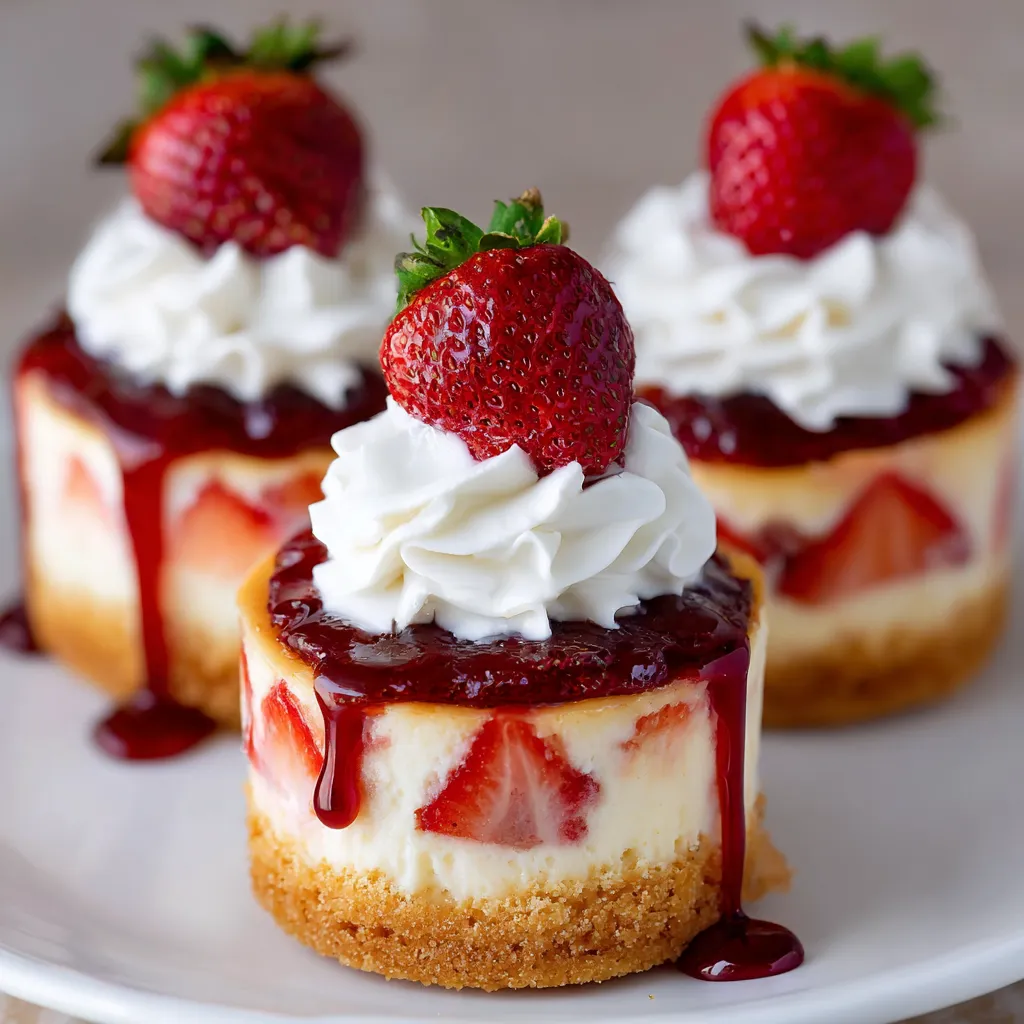 When I first made this cheesecake version, I wanted something that felt both elegant and comforting. The mix of buttery biscuit crust, smooth vanilla cheesecake, and juicy strawberry topping makes each bite taste like sunshine and love. Whether youβre making them for a weekend gathering or just to brighten your day, these mini cheesecakes will win hearts at first bite.