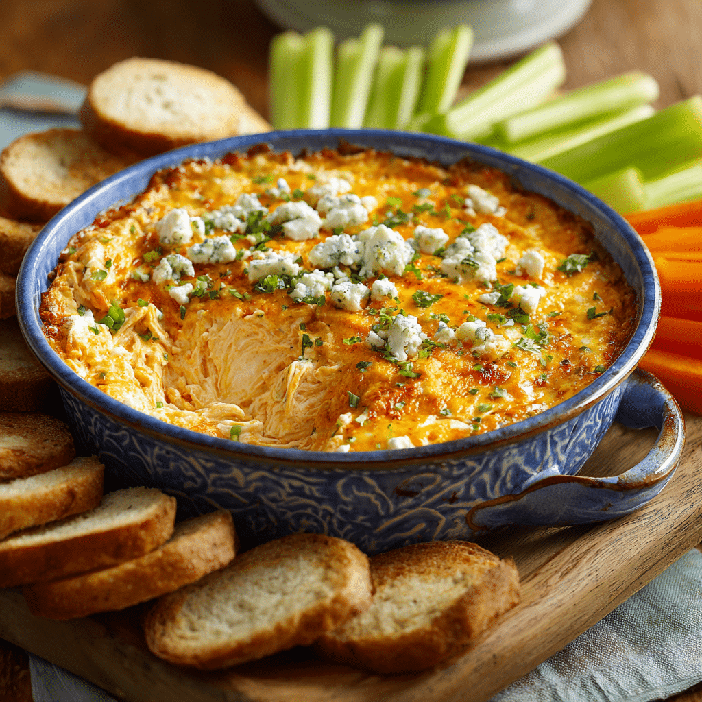 For a milder dip, reduce Buffalo sauce. For extra heat, add more or sprinkle chili flakes. Store leftovers covered in the fridge for up to 3 days and reheat gently.
