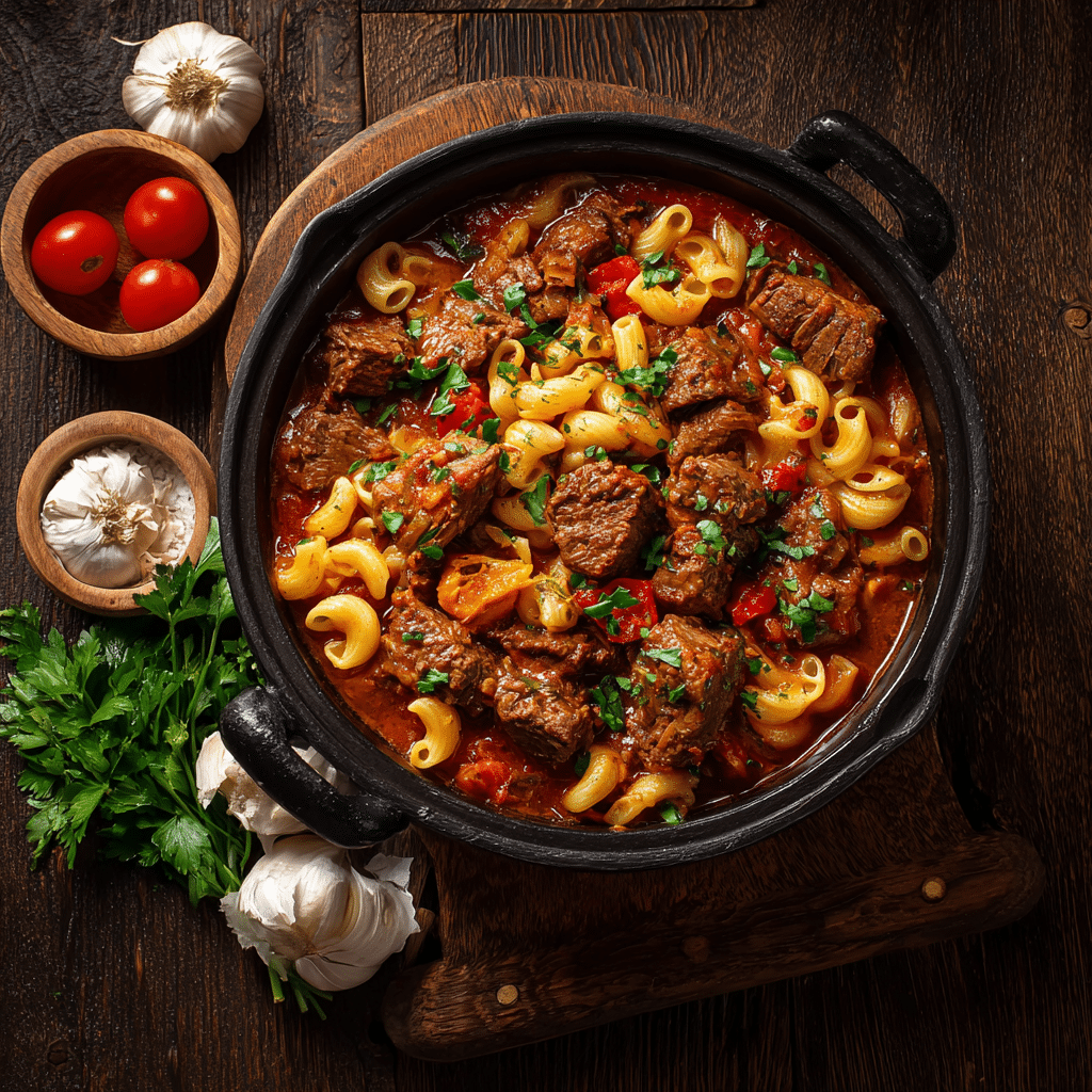 This recipe reminds me that good food does not need to be complicated. I cook this when my family feels tired, when friends come without warning, or when I need comfort myself. I always feel proud serving a pot of goulash because it shows care. This dish fills bellies, but more importantly, it fills hearts.