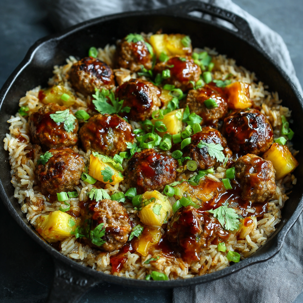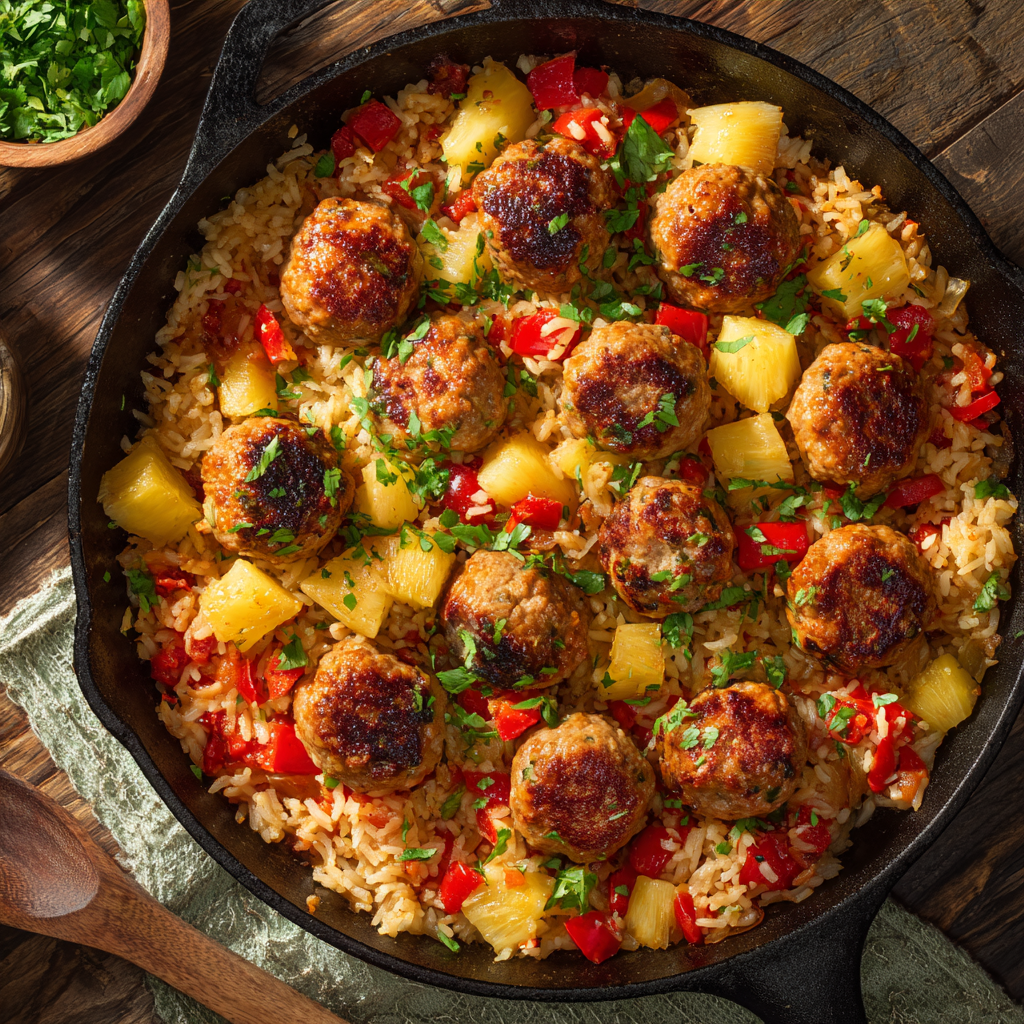 🍽️ One-Pan Hawaiian Meatballs and Rice