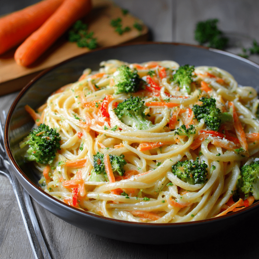 This Pasta Primavera Alfredo with Broccoli and Carrots is a creamy, comforting dish made with tender pasta, fresh vegetables, and a rich homemade Alfredo sauce. Perfect for family dinners or cozy evenings at home.